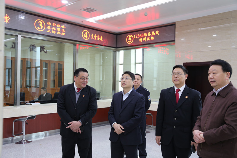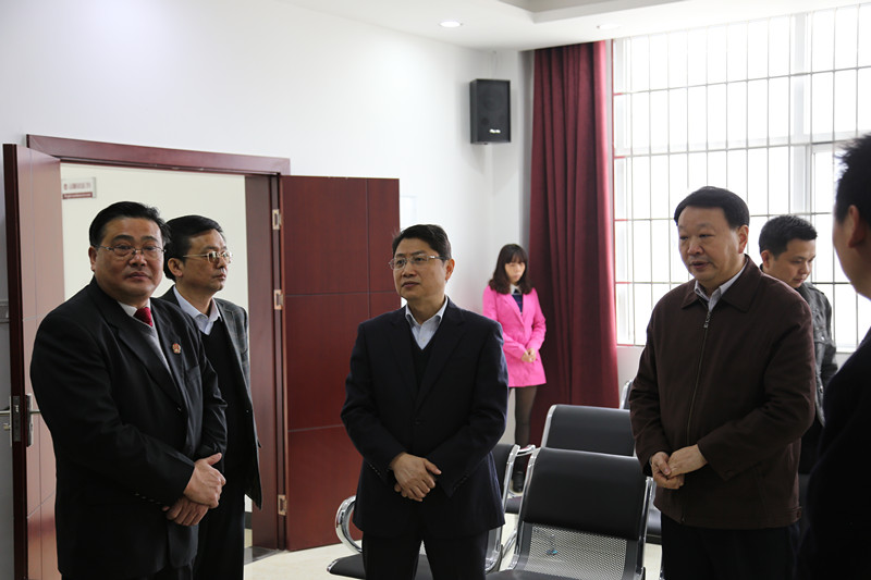 3月15日,湖北省高院党组成员、副院长田昌兵,法警总队总队长余劲海等领导在荆门中院党组书记、院长陈华,党组成员、副院长熊俊华及办公室负责人的陪同下,前往钟祥法院视察指导诉讼服务中心规范化建设和机关安全保卫工作。