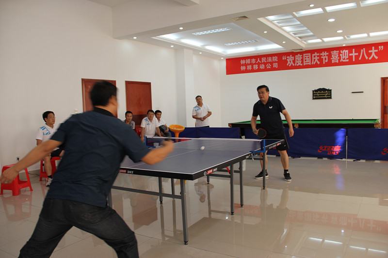 为大力推进法院文化建设,丰富干警文化生活,欢度国庆节,喜迎十八大,钟祥法院于9月28日在市移动公司举办了乒乓球比赛。