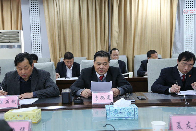3月26日上午,荆门市人大就法院执行工作来我院进行了视察调研。 荆门市人大内司委主任夏友新一行五人、荆门市中院党组成员、副院长熊俊华一行三人、钟祥市人大常委会常务副主任陈再斌等领导来我院参加了法院执行工作座谈调研。 会上,我院党组书记、院长李德虎分别从执行工作的创新、涉党政机关执行案件完成情况及人大在监督支持法院执行上的建议等方面对我院执行工作情况、当前存在的困难及今后的工作安排作了具体汇报。 夏友新主任充分肯定了我院的执行工作,并强调应密切关注省级战略,抓好涉及大柴湖案件的审判执行工作,为地方经济发展提供良好的司法服务和保障。